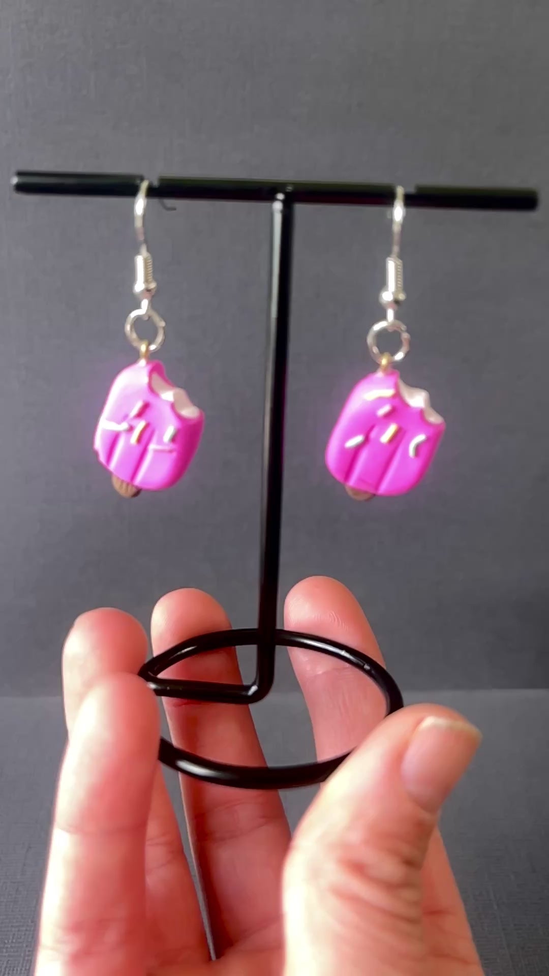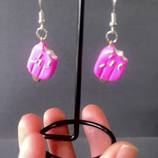 🍦✨ Pink Ice Cream Popsicle Earrings with Sprinkles