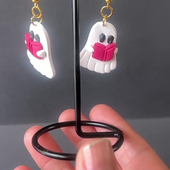 Sweet, spooky, and a little nerdy β these ghost earrings are hand-sculpted from lightweight polymer clay, featuring adorable little ghosts cozied up with their favorite books. Perfect for bookworms who love a touch of whimsy in their style!